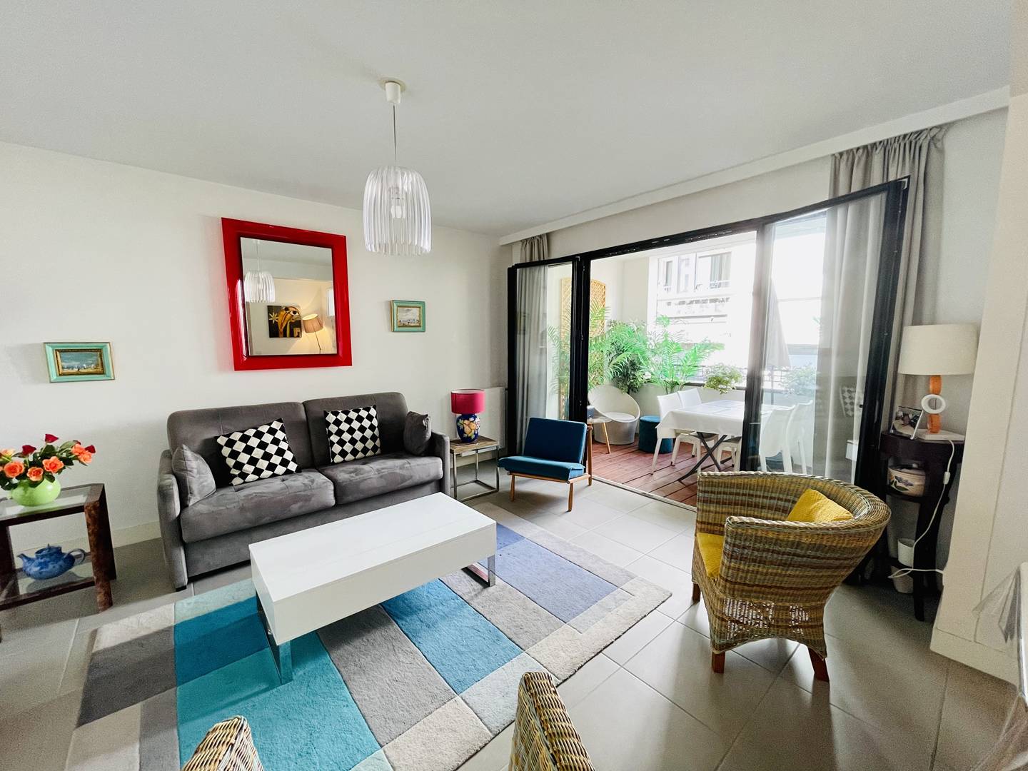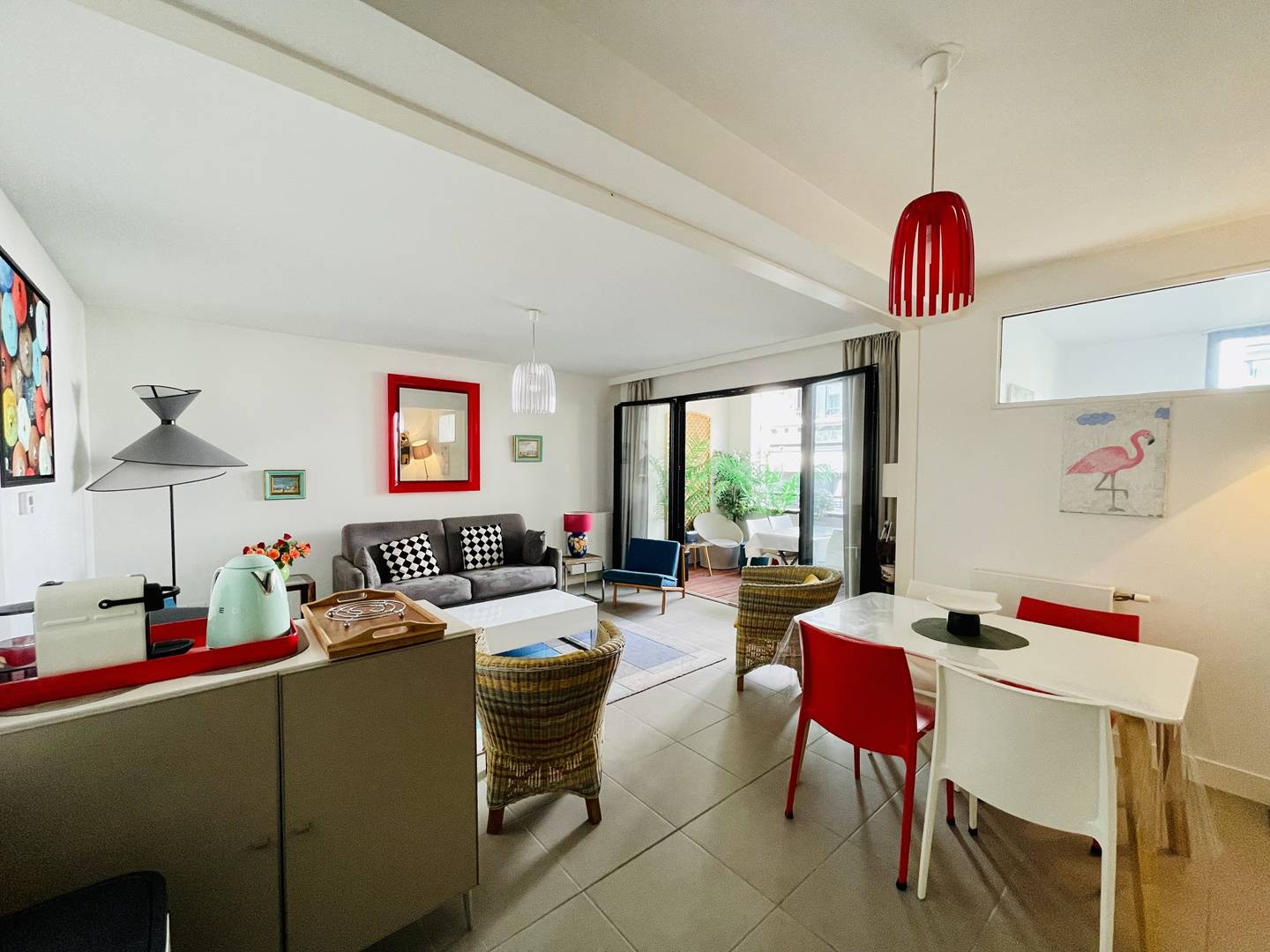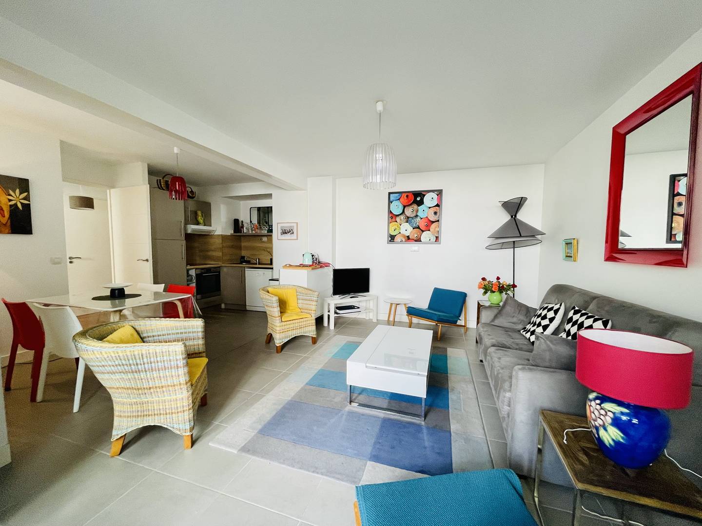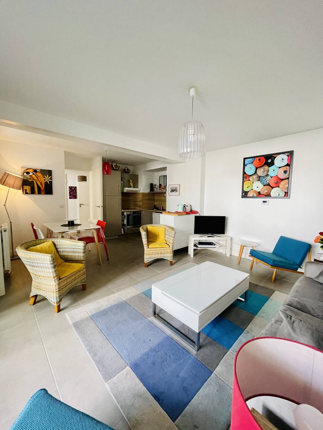 Appartement facile d’entretien (carrelage et parquet), bien équipé, décoration moderne et colorée. Place de parking nominative en sous-sol de la résidence. Très bonne situation géographique : il est possible de tout faire (marché, plage…) à pied !