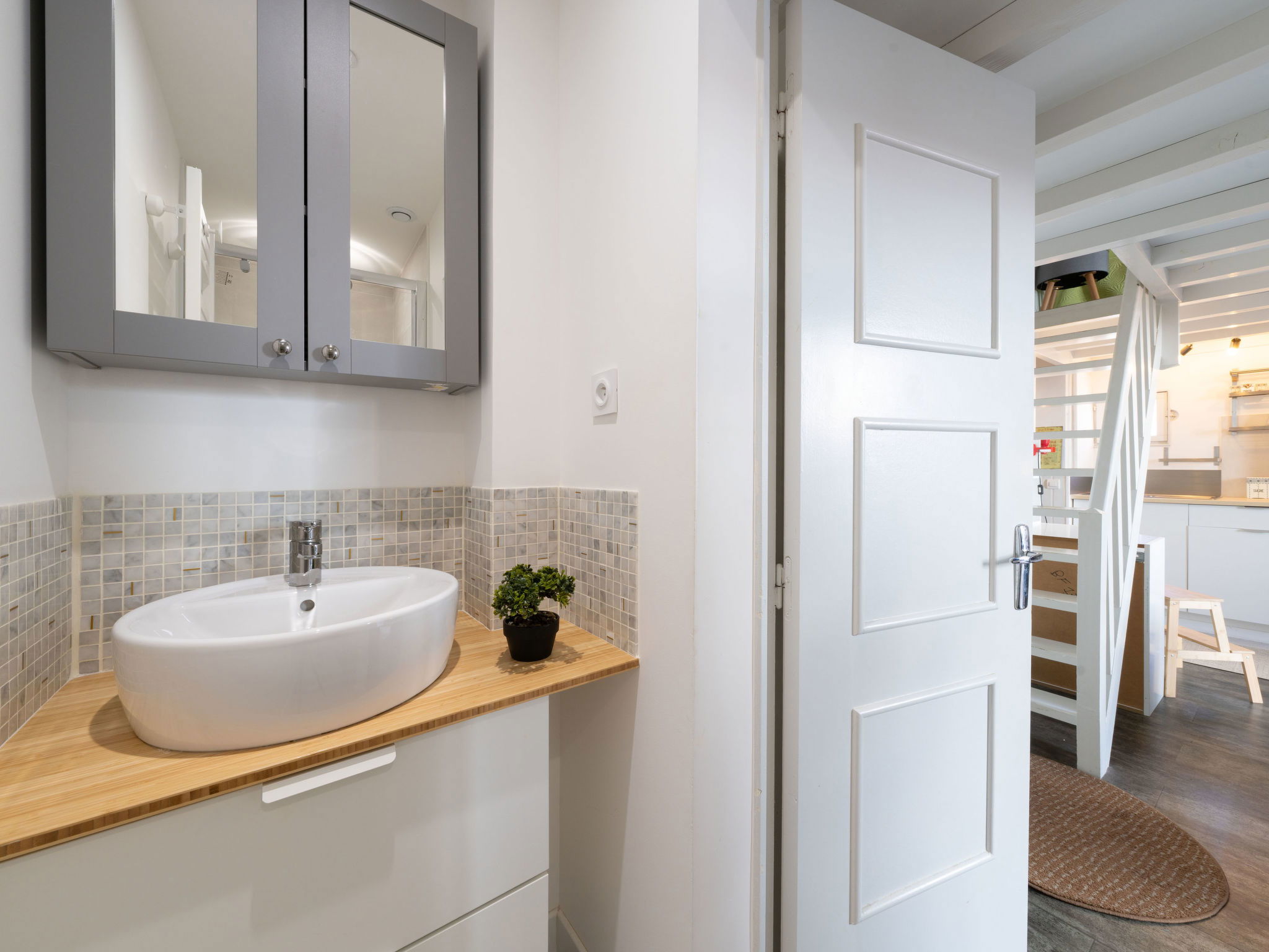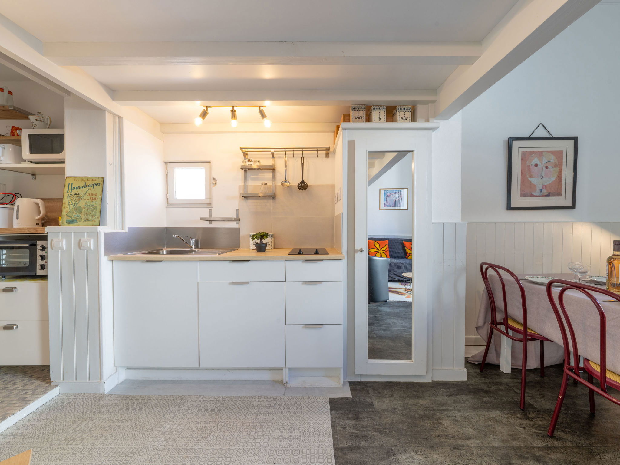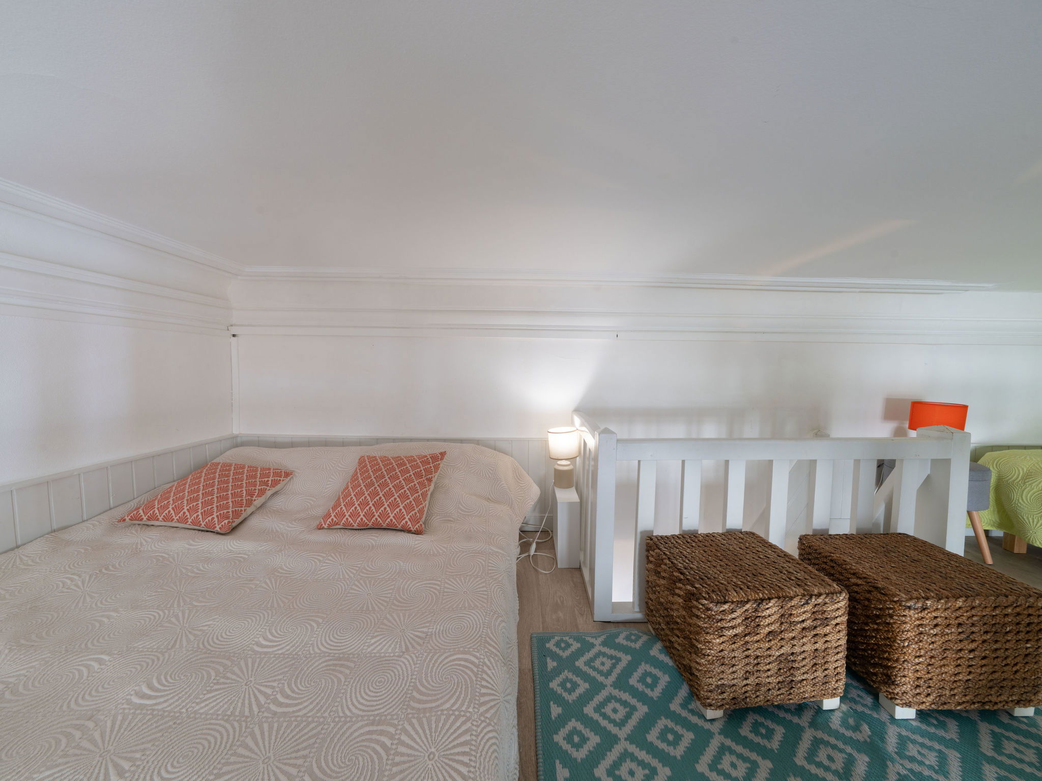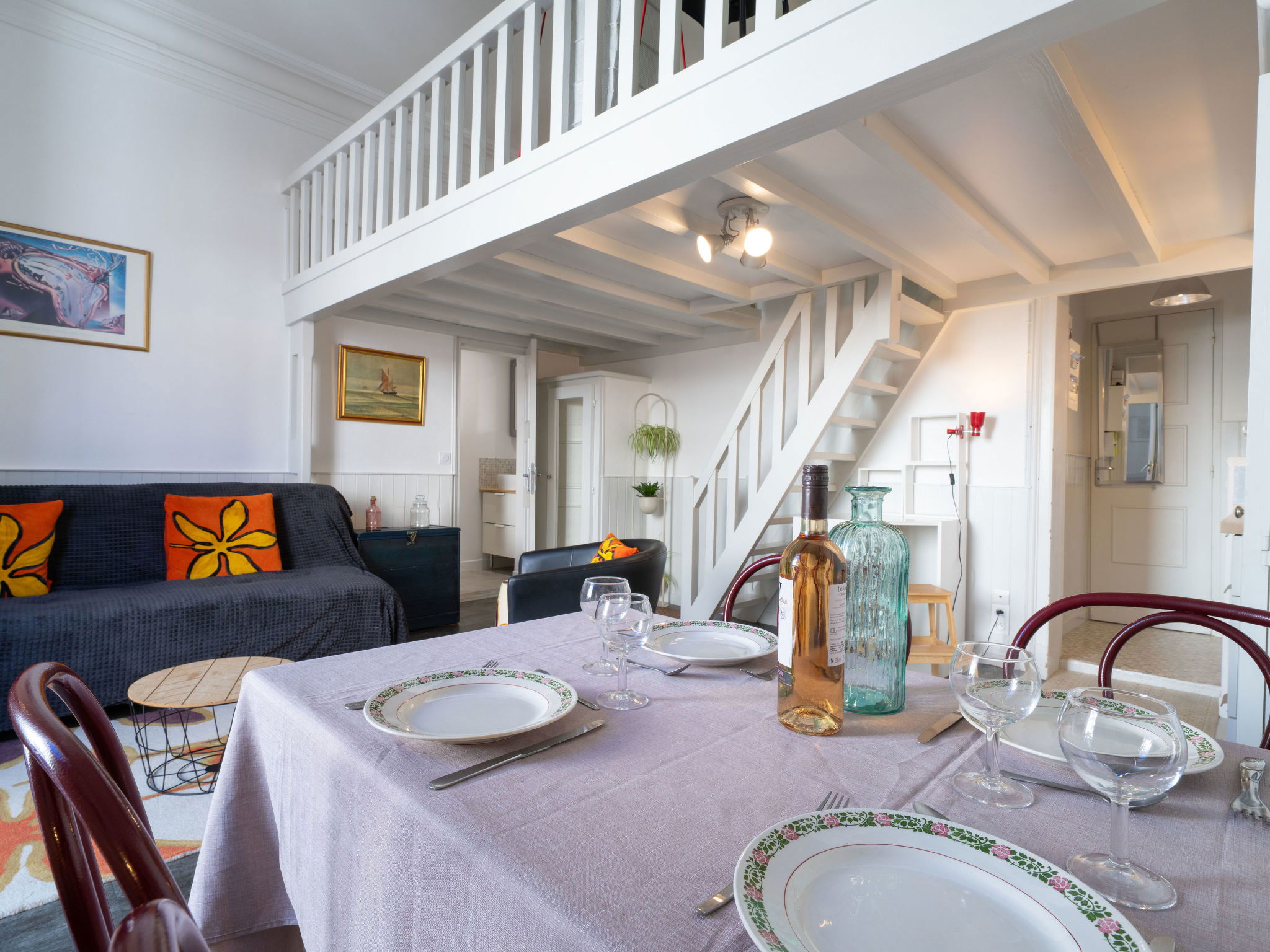Appartement de 2 pièces 27 m2 au 1er étage. Logement idéal pour 2 adultes + 2 enfants. Aménagement confortable et agréable: séjour/salle à manger avec 1 divan-lit double (1 x 140 cm, longueur 190 cm), TV (écran plat). Sortie sur la terrasse. Mansardée, cuisine ouverte (mini-four, four, 2 plaques vitrocéramiques, grille-pain, bouilloire électrique, micro-ondes, cafetière électrique, Capsules pour machine à café (Dolce Gusto) (NON INCLUSES)). Douche, WC séparé. Chauffage électrique. À l'étage supérieur: (escalier raide) galerie mansardée, hauteur plafond 130 cm avec 1 grand-lit (1 x 140 cm, longueur 190 cm). Petite terrasse 5 m2, situation nord. Meubles de terrasse. A disposition: fer à repasser, sèche-cheveux. Internet (Connexion WIFI, gratuit). Place de parking No 5 (cloturée, 1 Voiture). Veuillez noter: adapté(e) aux familles. Logement non-fumeur. Détecteur de fumée, sans ascenseur. Annonce d'un particulier (art 155, IV du CGI). 3300900295019