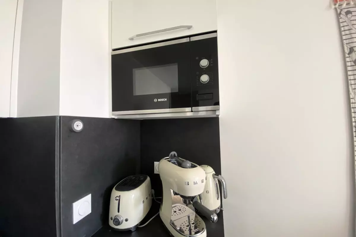 - La cuisine est entièrement équipée avec une machine à café, un lave-vaisselle, un four, un micro-ondes, un réfrigérateur et tous les ustensiles nécessaires pour préparer de délicieux repas.