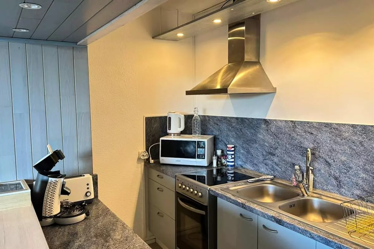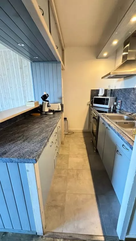Il comprend une chambre équipée d’un lit double de 140X190, une salle de douche fonctionnelle, ainsi qu’une cuisine entièrement équipée pour préparer vos repas.