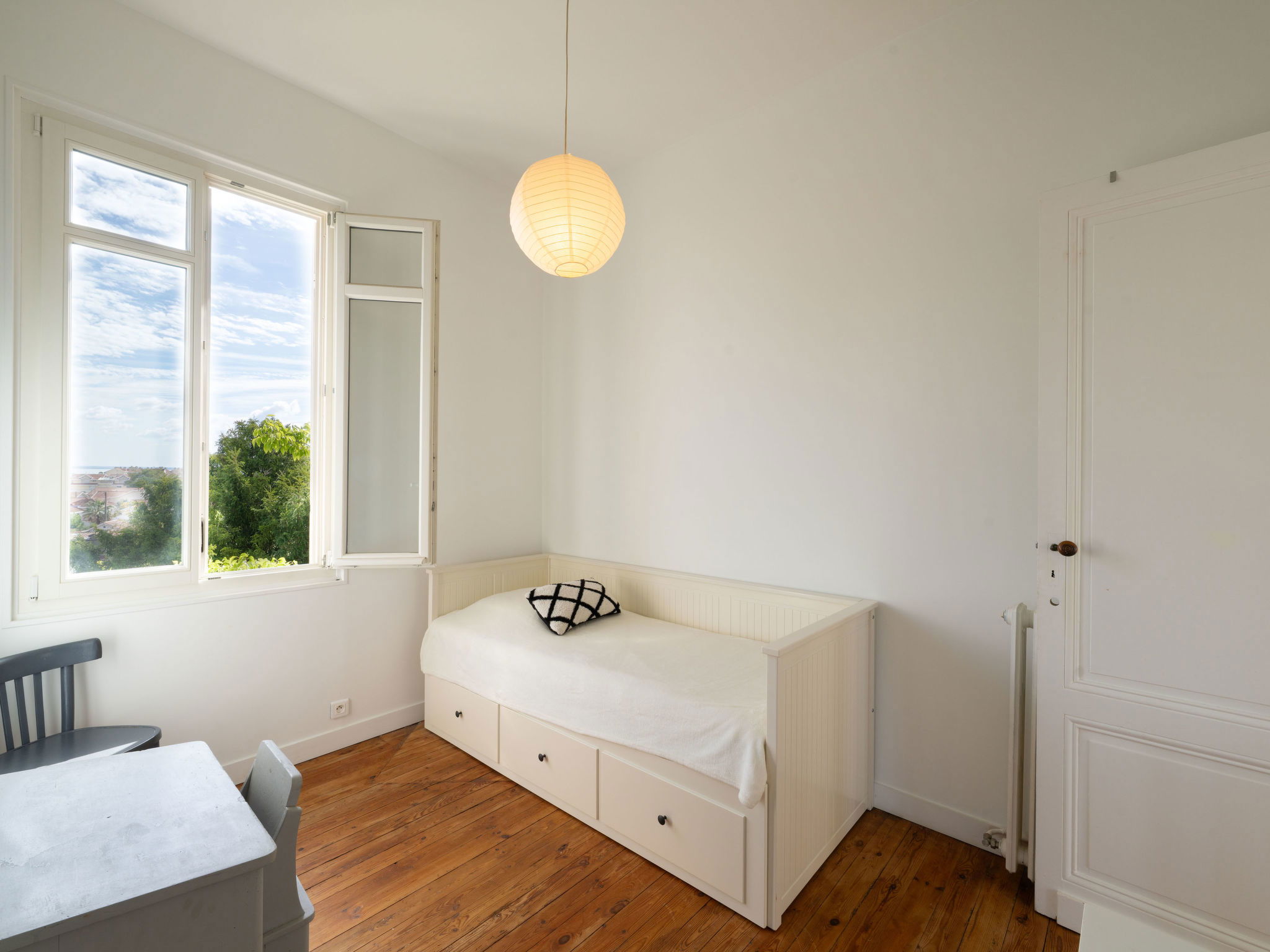 Arcachon: Grande maison individuelle "Miarka", année de construction 1900. Situation surélevée, à 230 m de la mer, à 230 m de la plage. Place de parking (pour 2 voitures). Magasins 1.8 km, magasin d'alimentation, supermarché 750 m, centre commercial 3.9 km, restaurant 160 m, bar 750 m, boulangerie 210 m, café 600 m, location de bicyclettes 800 m, arrêt de bus "Plage d'Eyrac" 170 m, gare ferroviaire "Arcachon" 1 km, plage de sable "Plage d'Eyrac" 230 m, parc "Mauresque" 1.9 km, centre de plongée 1.5 km, centre thermal "Thalazur" 4.2 km. Port plaisance 2.6 km, terrain de golf (18 trous) 4.8 km. Attractions à proximité: Dune du Pyla 11.5 km, Eratopia 9.1 km, Navette Maritime pour le Cap Ferret 2.2 km, Casino 650 m, Marché Municipal 1.1 km, Observatoire Sainte Cécile 2.8 km. Les lacs connus sont facilement accessibles: Lac de la Magdeleine 10.6 km, Lac de Cazaux 18.9 km. Le propriétaire n'accepte pas les groupes de jeunes. Veuillez noter: la remise des clés a lieu à l’agence d'Arcachon, 2 km. Le propriétaire habite sur le même terrain. Environnement très sensible au bruit. Silence et bonne tenue exigés.