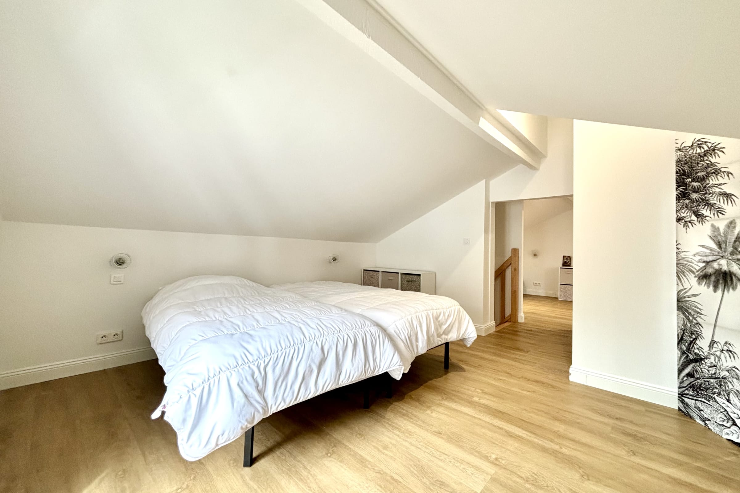 Au rez-de-chaussée, vous trouverez une grande pièce à vivre lumineuse et une agréable chambre avec sa salle d’eau privative.