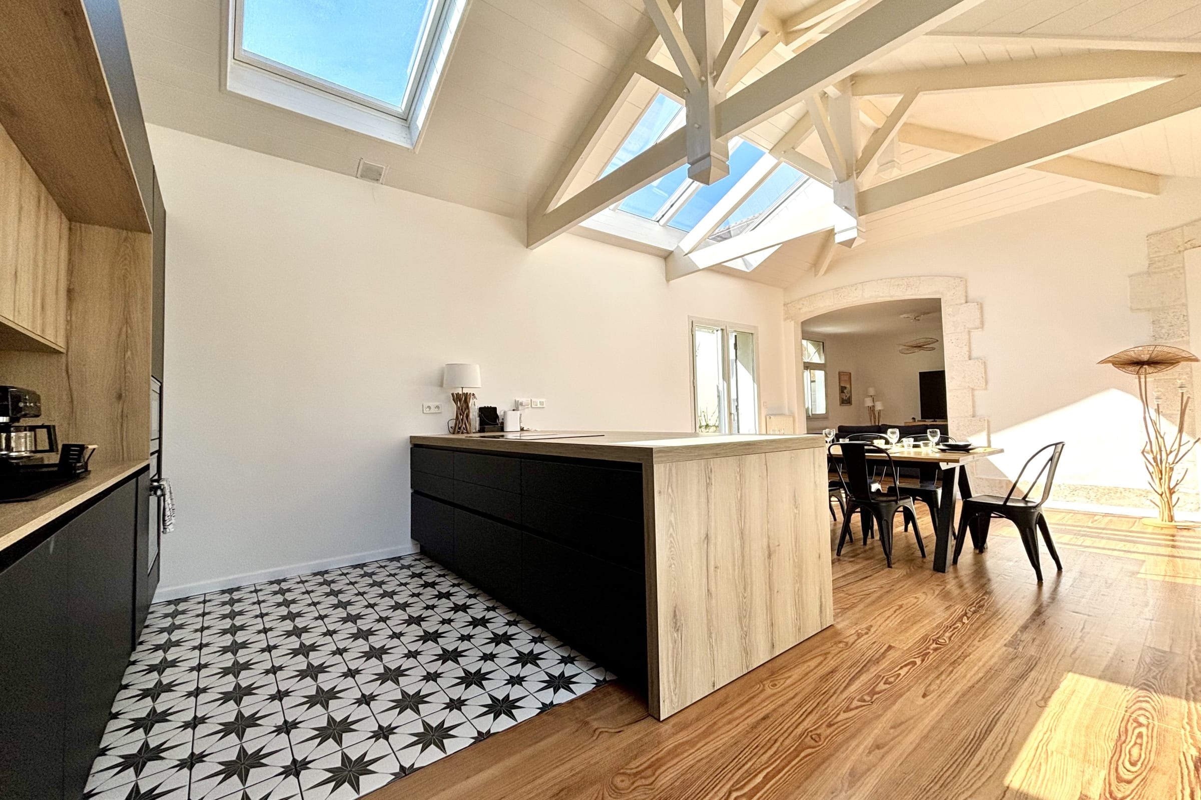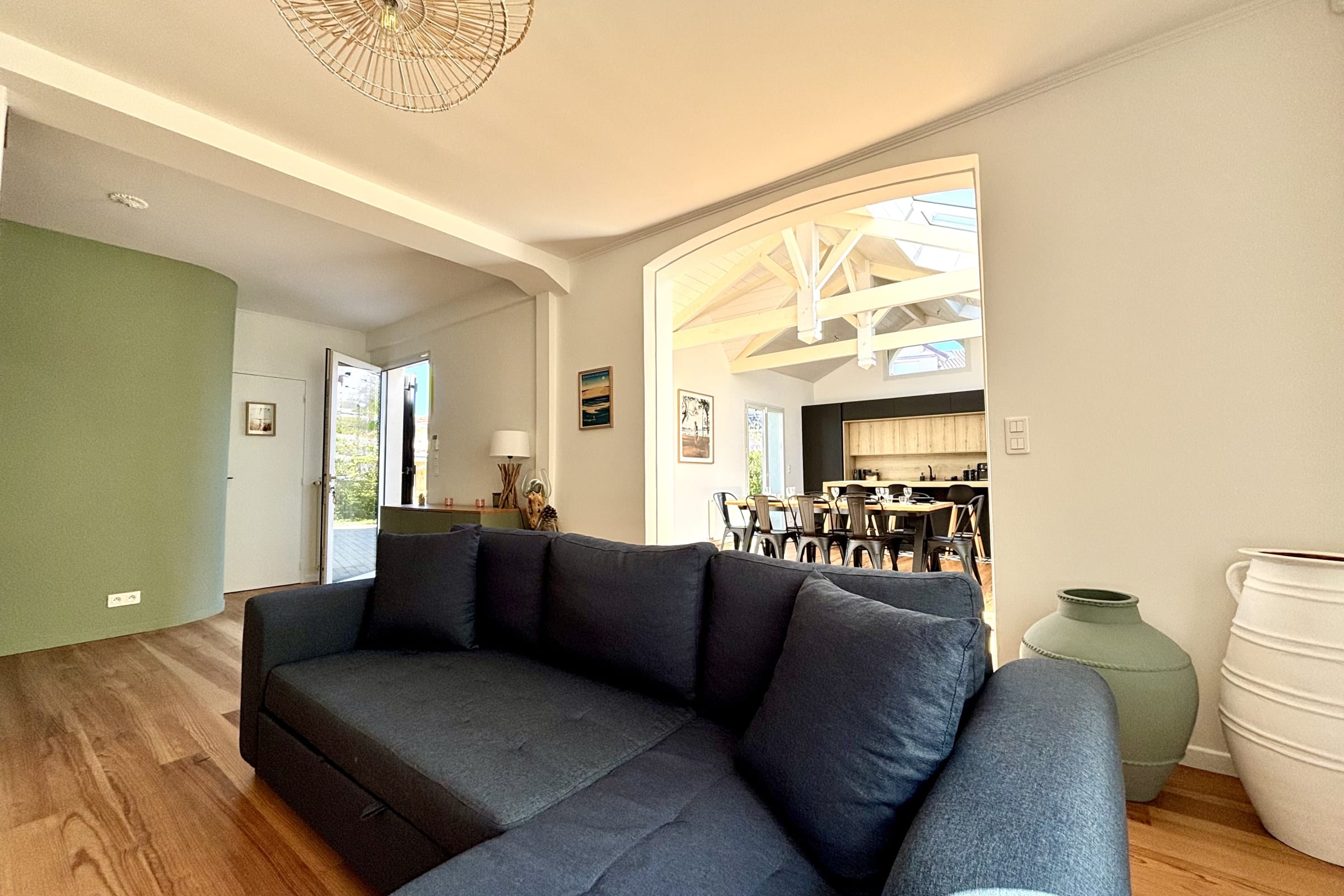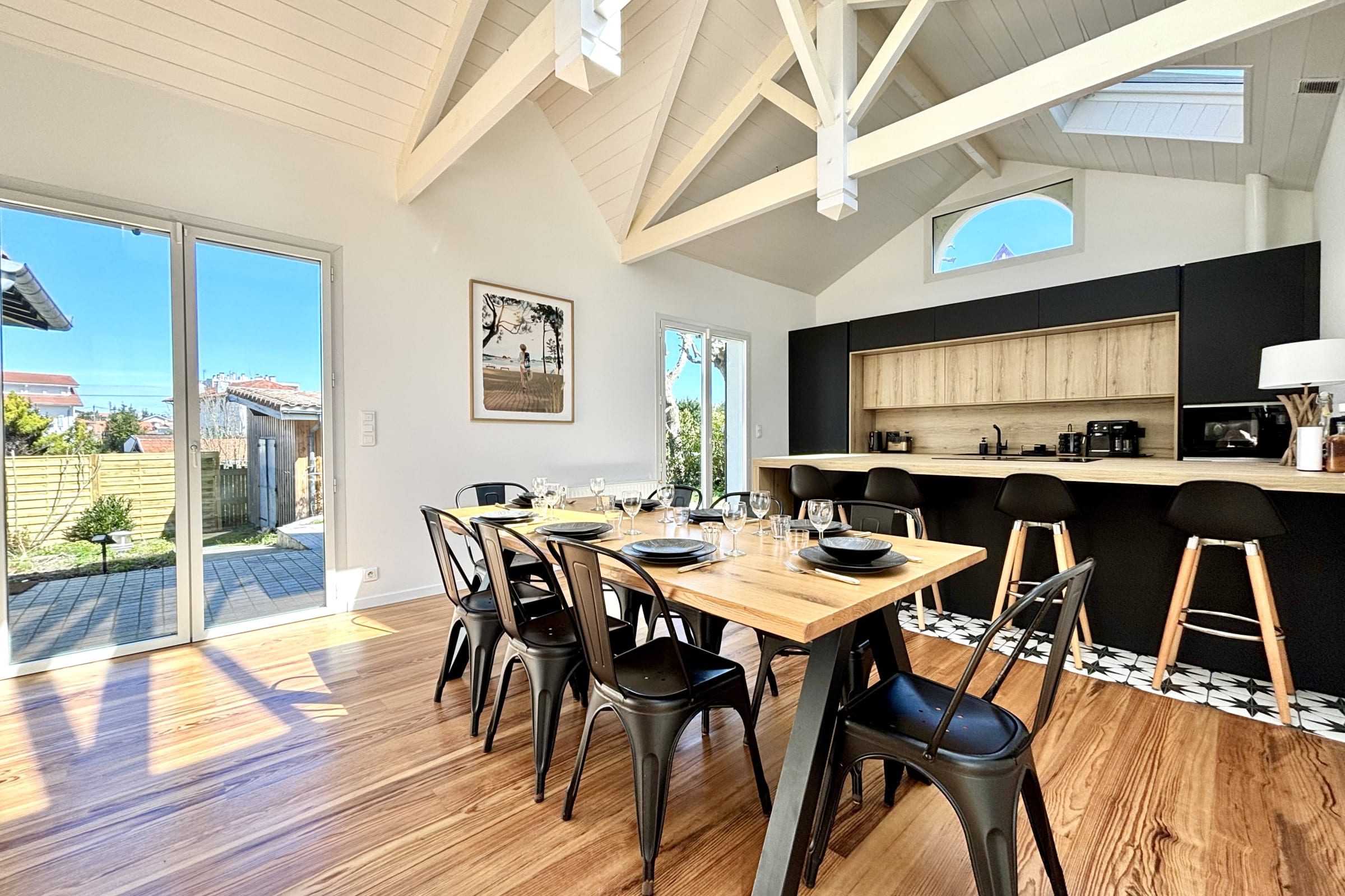 Pensée pour des séjours en famille ou entre amis, la maison se compose de plusieurs espaces distincts offrant à la fois convivialité et intimité.