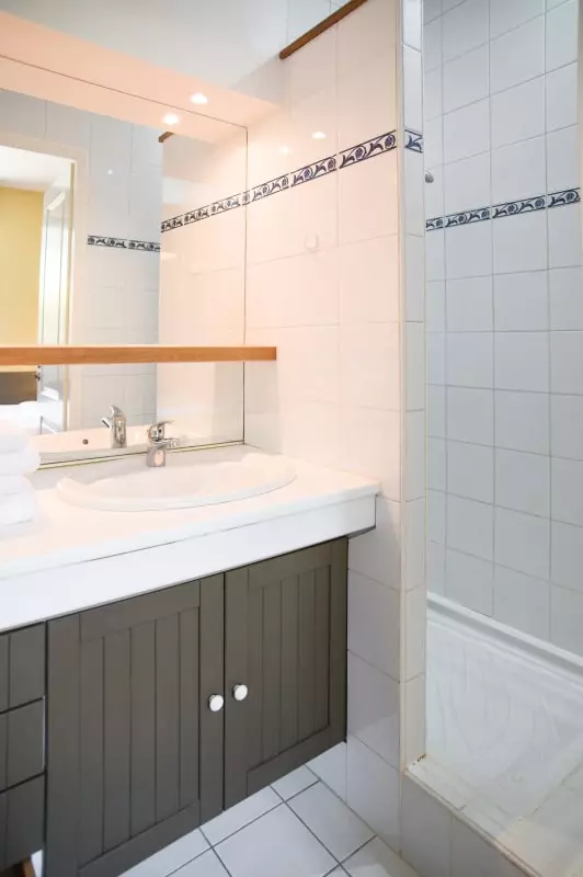 -Chambre 2 : lit queen-size, salle d’eau privative (vasque + sèche-serviettes).